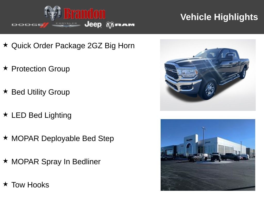 At our dealership, we pride ourselves on offering a wide selection of high-quality vehicles and an exceptional customer experience. We invite you to come in and take this 2024 Ram 2500 Big Horn for a test drive. Experience the power, versatility, and comfort that this truck has to offer, and let us help you find the perfect vehicle to meet your needs.
