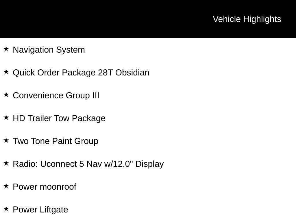- Radio: Uconnect 5 Nav w/12.0" Display
