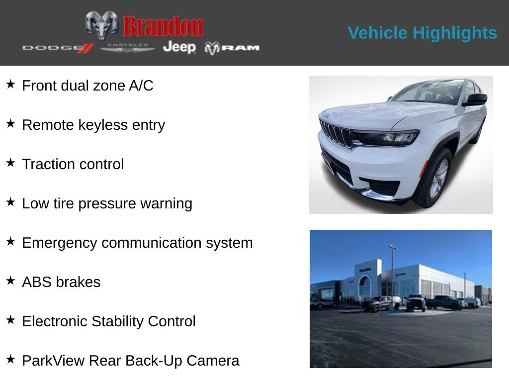 We invite you to visit our showroom and experience the 2026 Jeep Grand Cherokee L Laredo for yourself. Let us demonstrate how this exceptional SUV can enhance your daily commute, weekend adventures, and everything in between. We're confident that once you get behind the wheel, you'll be captivated by its unparalleled capabilities and refined elegance. Price includes: $1000 - 2026 National Stellantis Loyalty Bonus Cash . Exp. 04/30/2026 $1500 - 2026 National Retail Bonus Cash . Exp. 04/30/2026 $2000 - 2026 National SFS Lease Loyalty Bonus Cash . Exp. 04/30/2026