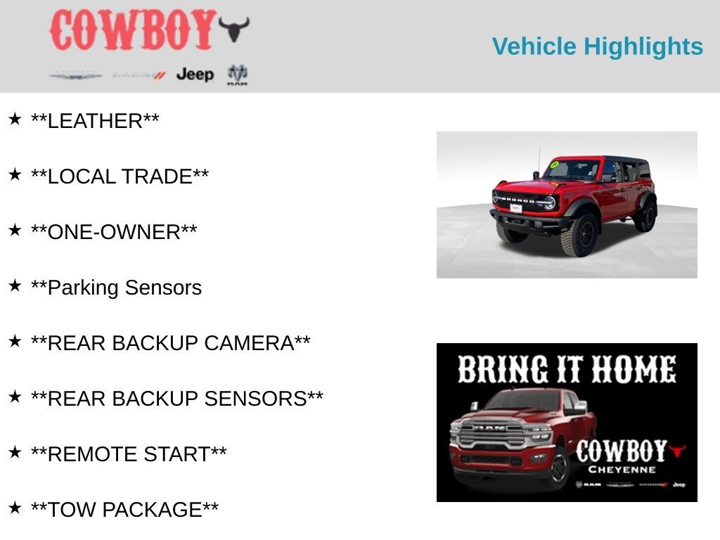 I want to start off by saying I have been waiting for the release for years and had very high expectations because I grew up in a bronco family. When I bought mine I was not disappointed. It was a beautiful blend of nostalgia and new features married to create a new vehicle in the small suv class that is different then all the others. There isn't much I don't like about the design. I have the big bend with a couple add on options. I'm very happy!… - 5.0