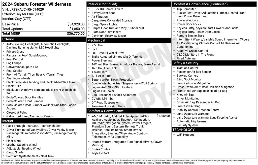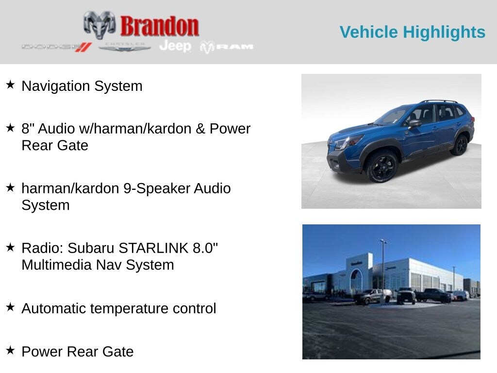 - Radio: Subaru STARLINK 8.0" Multimedia Nav System